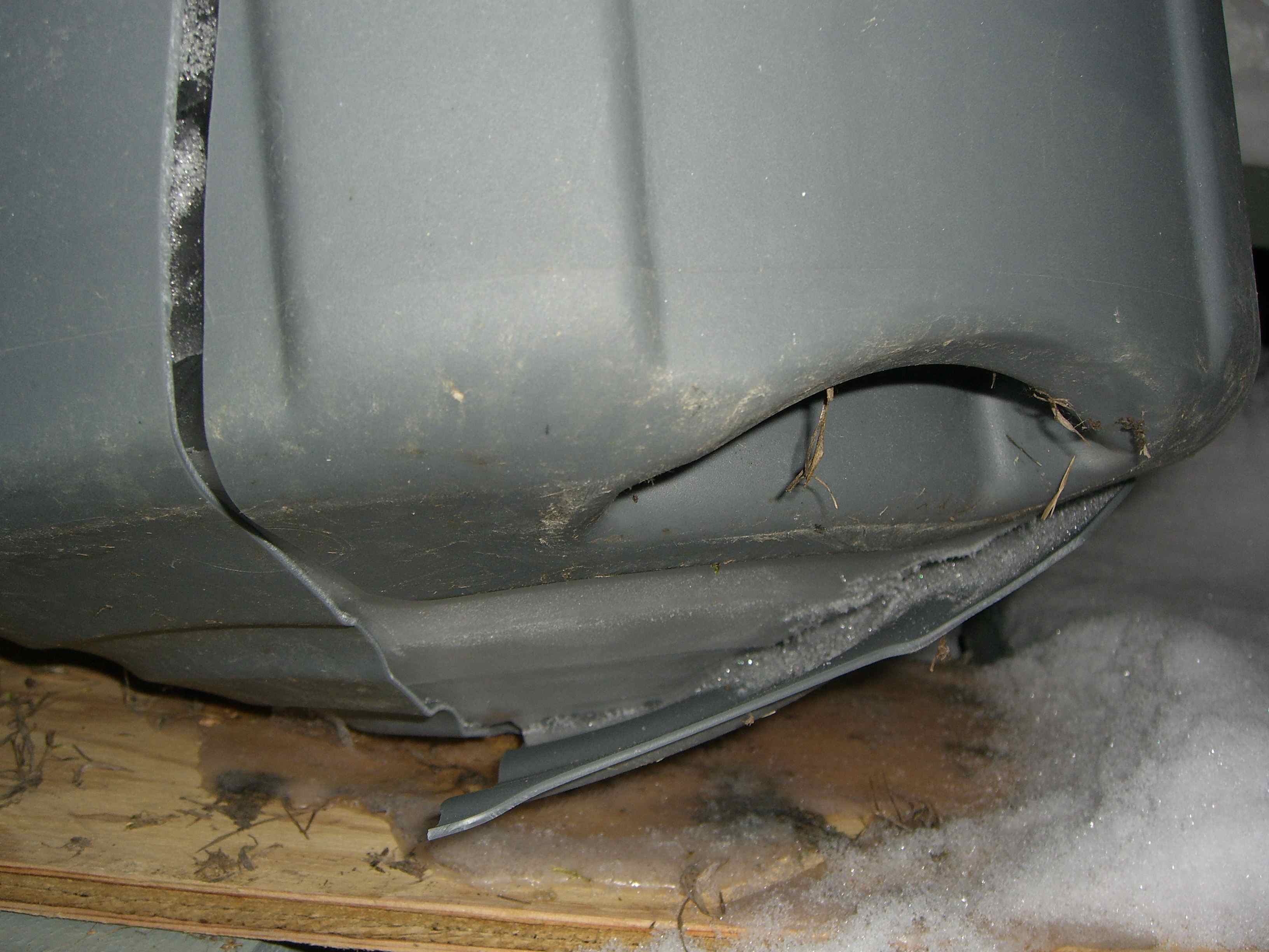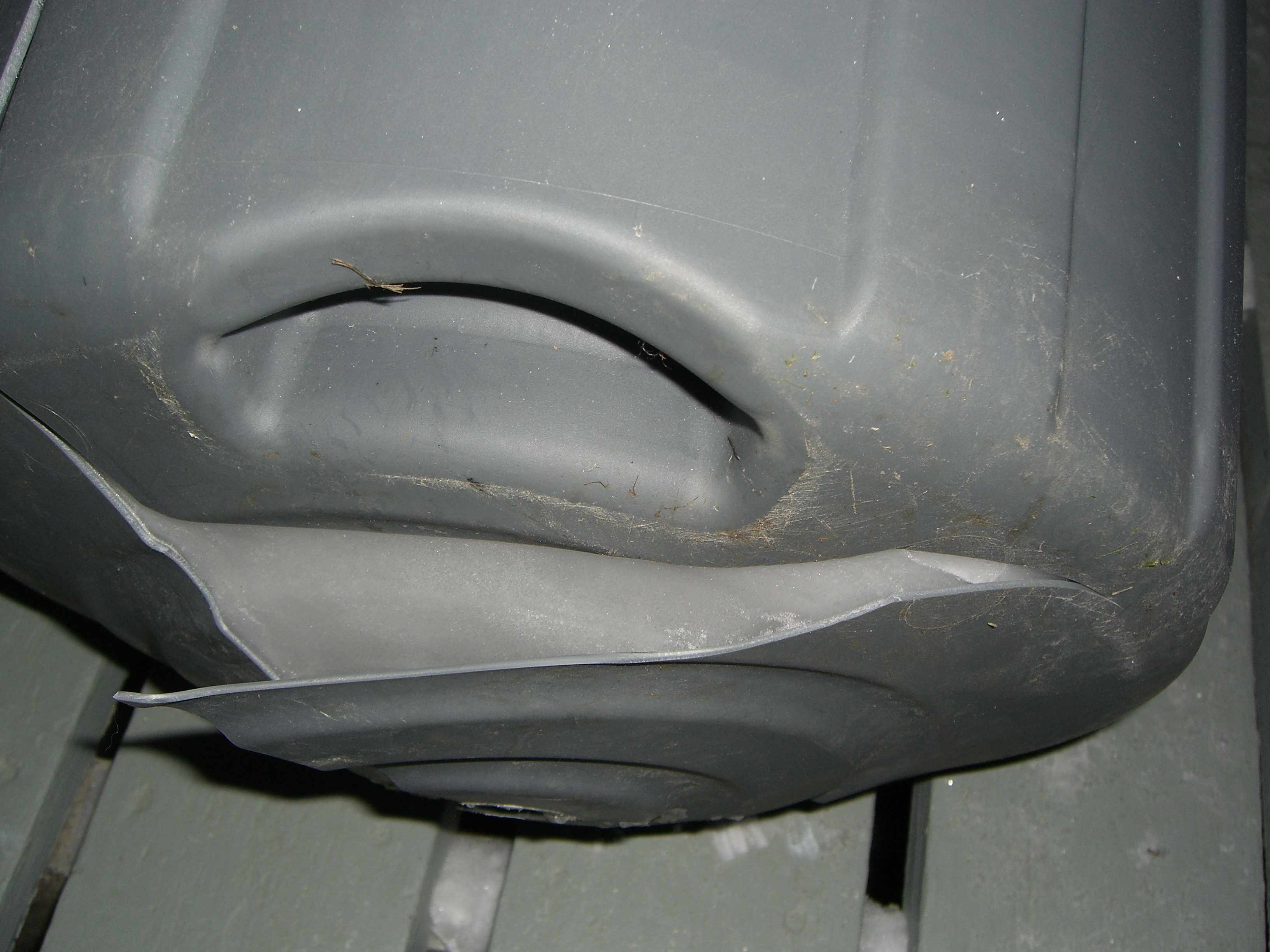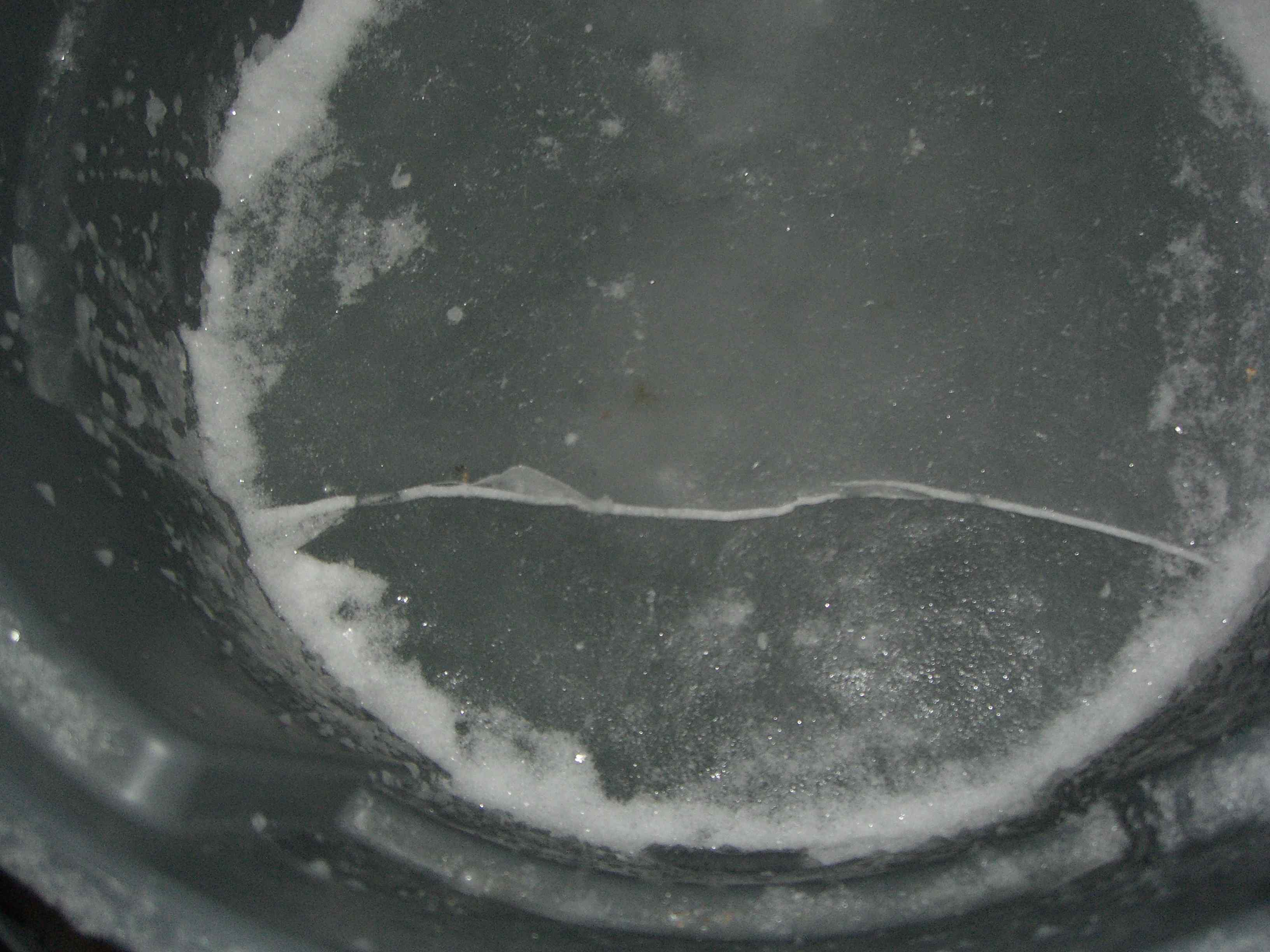 The properties of garbage pail plastic: not so stretchy. The properties of water turning to ice: a phase change that releases lots of energy, and needs to expand. I know that.