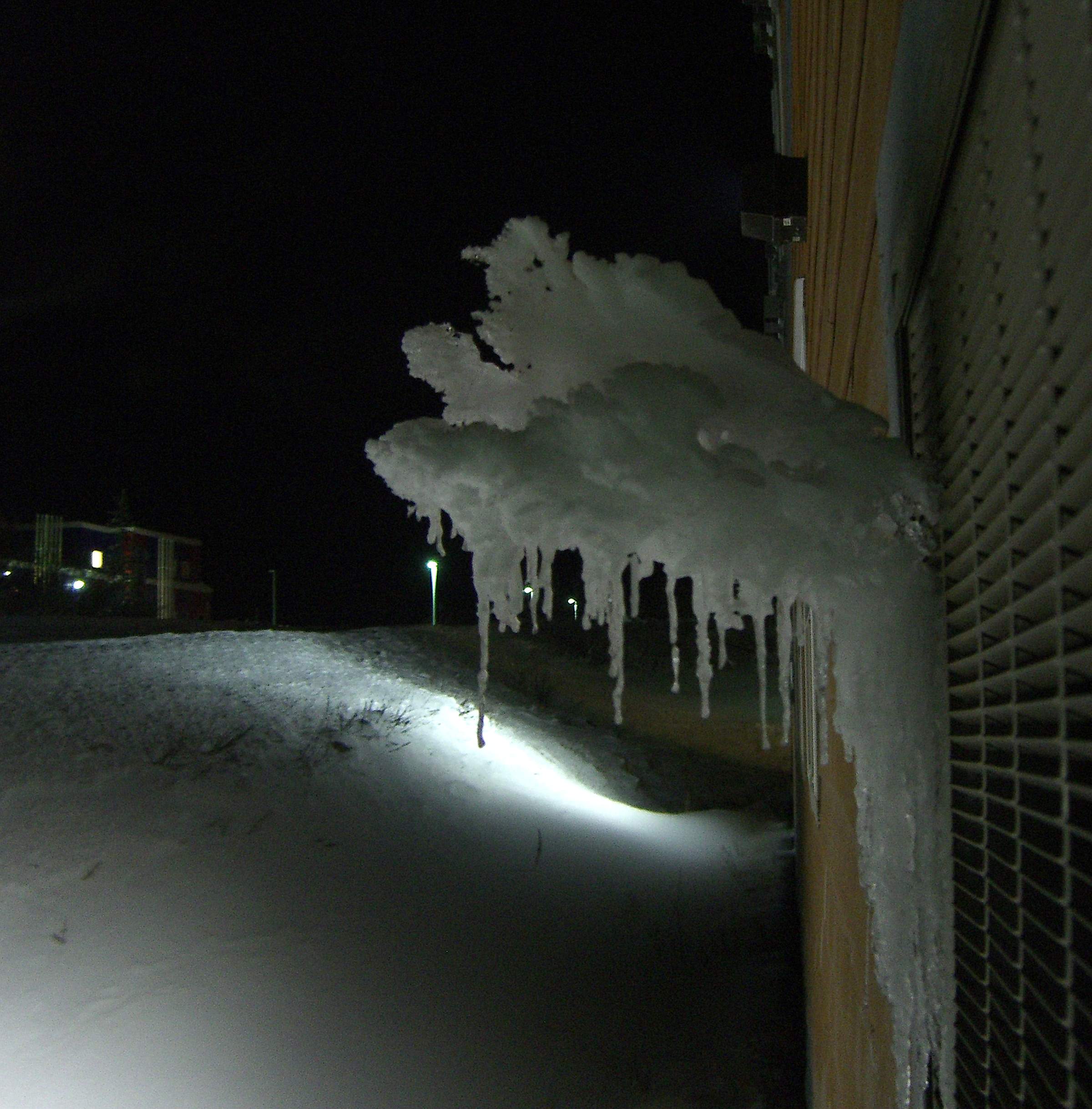 icicles, cumulus, coral Posted on January 9, 2010 by goodcoldwater they’re everywhere, icicles, and this formation is the most complex one I’ve seen yet. in a rare anti-gravity feat, icicles attempt imitation of coral or of cumulus. caught rising from a heat vent at the Nova Hotel, Inuvik, last weekend. Share this: Click to share on X (Opens in new window) X Click to share on Facebook (Opens in new window) Facebook Like Loading... Related