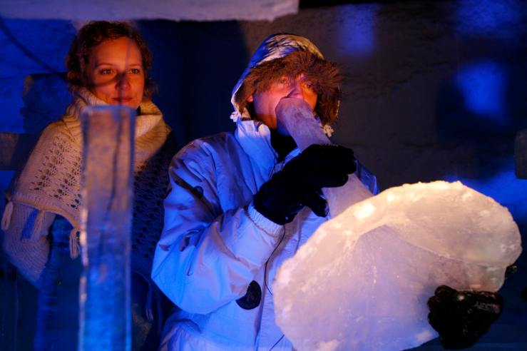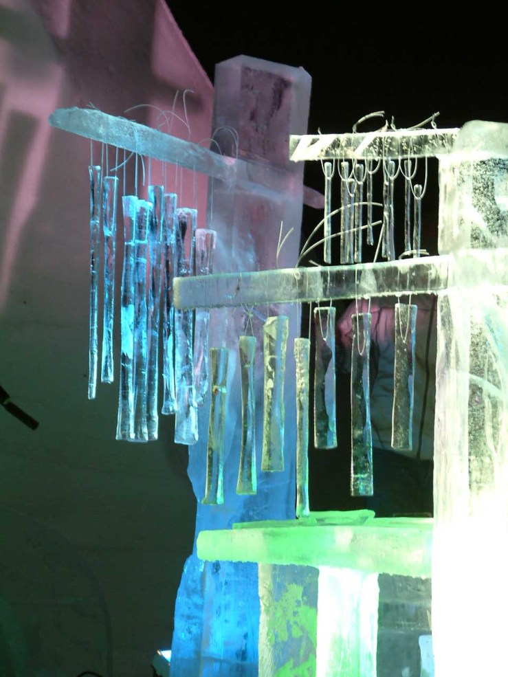 Ice C: Ice instruments played with human breath sound almost like human vocalization at times. And ice percussion sometimes sounds metallic. [Readers, have a listen to a five-minute clip from this year’s festival and you’ll get a sense of what I mean.]