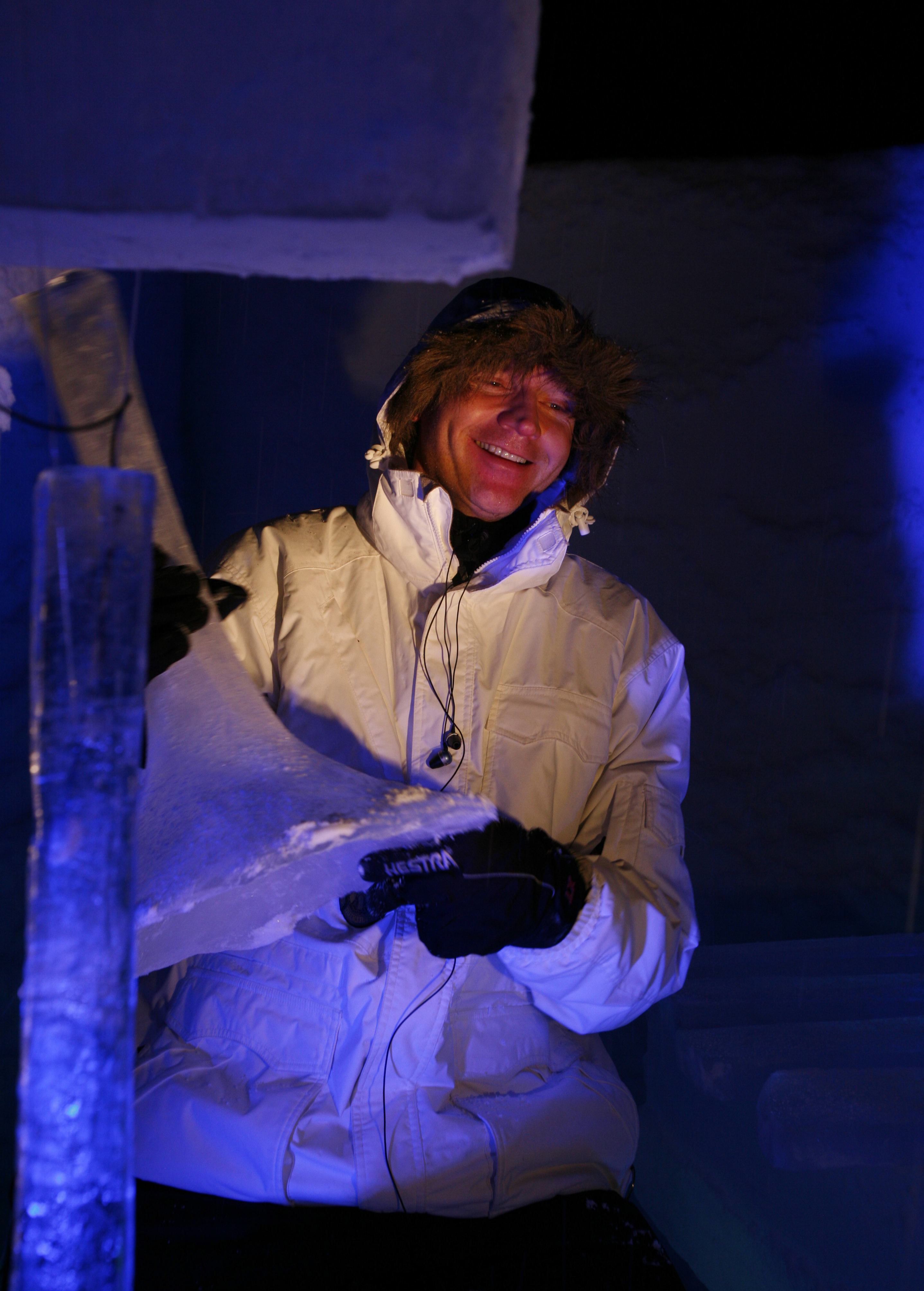 I am a percussionist, a drummer, so I started with the ice percussion. In Sweden they have very high quality ice there, so I did some work with ice music for The Ice Hotel [in Jukkasjärvi].