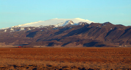 Eyjafjallajokull is the sixth largest glacier in Iceland and is (or was?) cone-shaped. It’s located to the north of Skógar and to the west of the bigger glacier Myrdalsjokull.