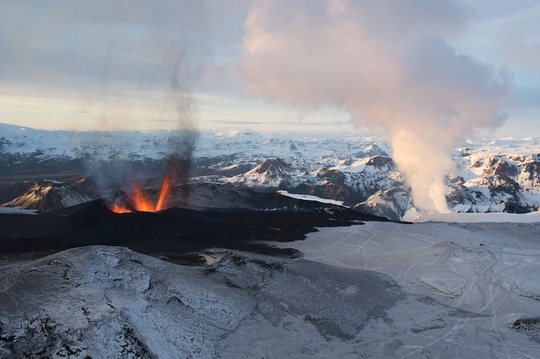 As we all now know, its icecap covers a volcano (1,666 metres or 5,466 ft in height); it erupted a few times in the past millenium (in 920, in 1612, and between 1821–1823) and now twice this year.