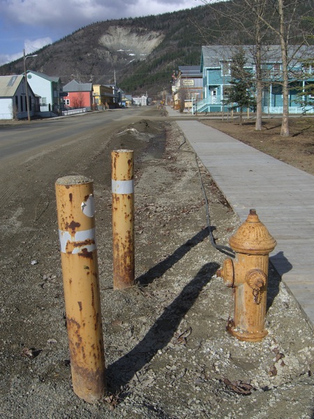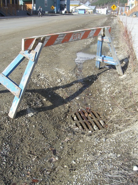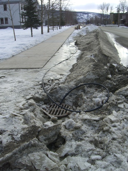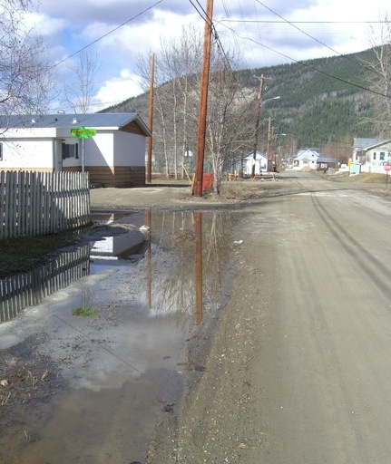 Okay, what about everyone else? City of Dawson crew have had their hands full getting the town’s pipes thawed to handle all the meltwater. The thaw requires planning and logistical planning, since Dawson has an underground pipe system plus a desire to keep the roads drained as much as possible.