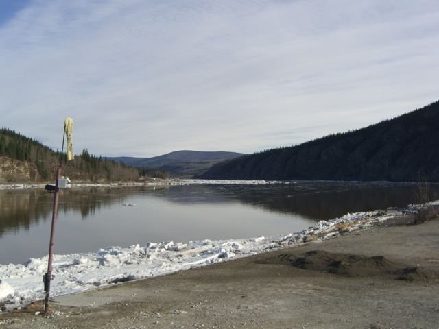 See how soft the ice looks around the tripod’s feet? April 15 was the last day I dared walk on the river ice, though others were still crossing to West Dawson for days after.