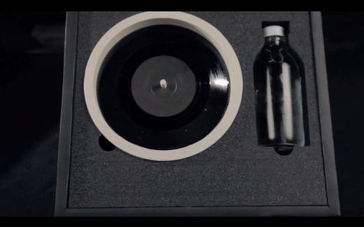“We talked to professors at different universities telling us it would never work out, so we had to develop the technique ourselves,” he says. After receiving a negative imprint of the song’s master cut, they started experimenting; the office became a kind of amateur chemistry lab, and the team spent hours testing different types of liquid, various drying techniques, and multiple kinds of molds.