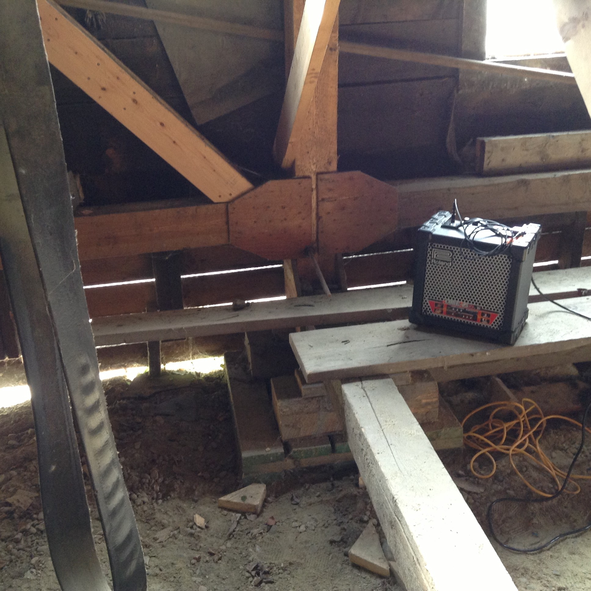 This installation is a playful attempt at transmitting sounds from architecture to artist to musician to listeners. In the studio, I had been tracing objects with a contact microphone and made acoustic “drawings” with those sounds.