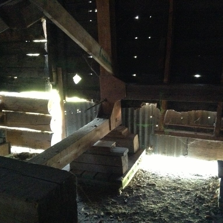 For telepathy by touch I scaled the activity up by tracing sections of walls, flashings, busted floorboards and creaky ceiling beams in Dawson City’s historical Billy Biggs’ Blacksmith Shop.